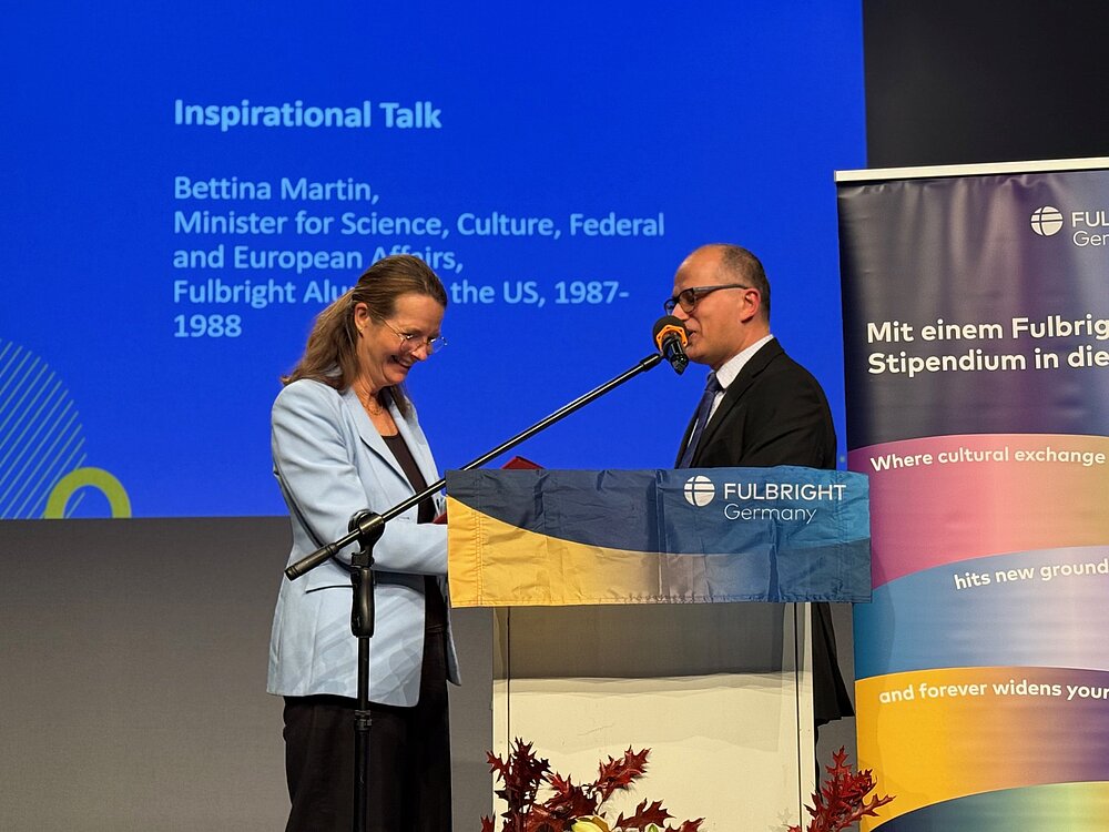 We were especially honored to welcome Bettina Martin, Fulbright alumna, Minister for Science of Mecklenburg-Vorpommern, and President of the Conference of Ministers of Science in Germany. In her inspirational keynote, she reflected on the transformative power of international exchange and science, the importance of academic collaboration, and the personal impact of her Fulbright experience. Her words were a highlight of the evening.